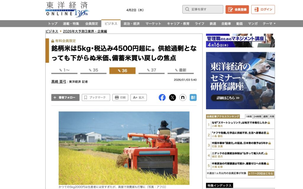 米価が高い時期に農家が陥りがちなのが、「今が良いからこのままでいい」という思考停止です。