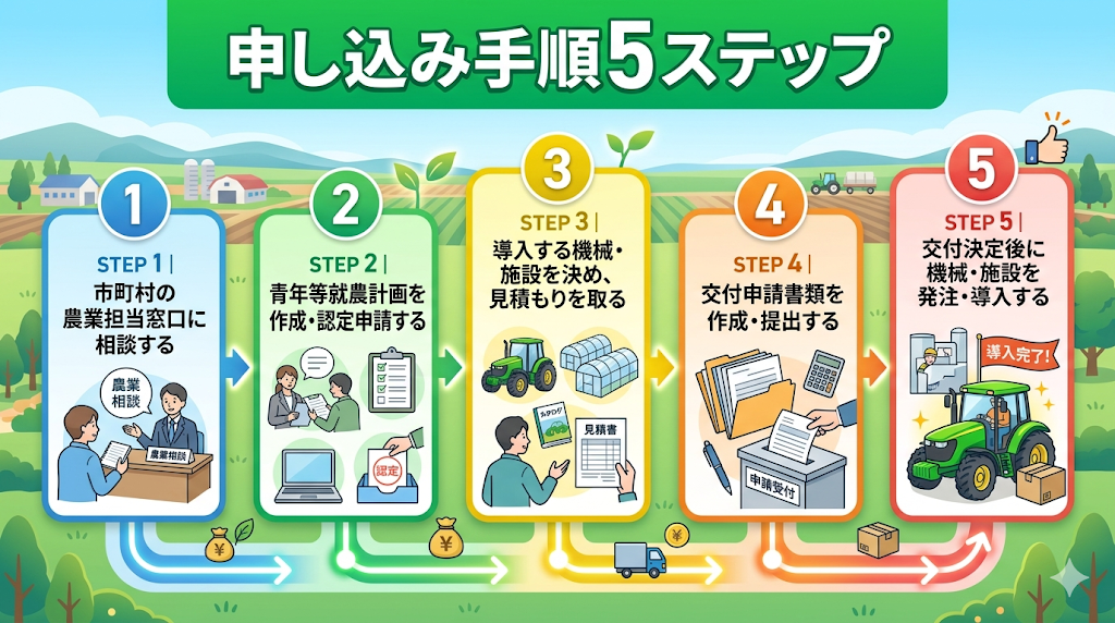 ⚠️ 機械・施設の導入には認定就農者の資格が必要です。認定申請書類は市町村農業委員会で取得できます。