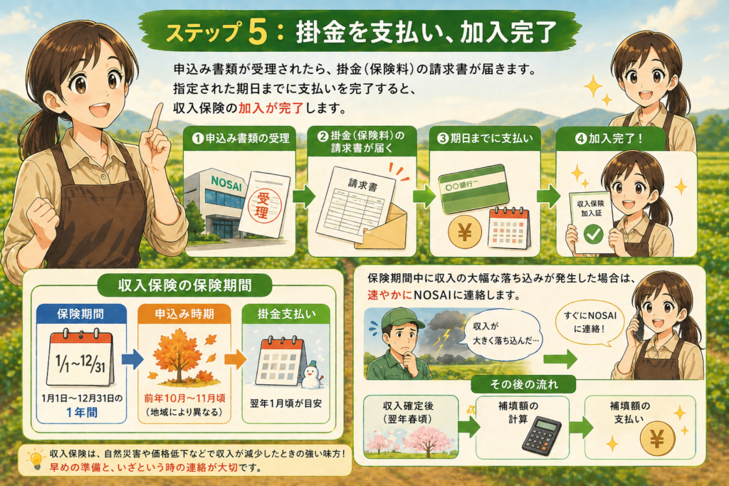 - 加入後: 収入が落ちたらすぐにNOSAIへ連絡することが大切