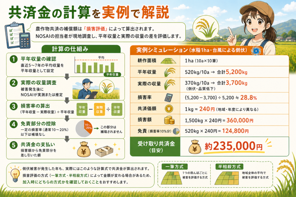 共済金の計算を実例で解説:台風・冷害・倒伏被害でいくら受け取れるか