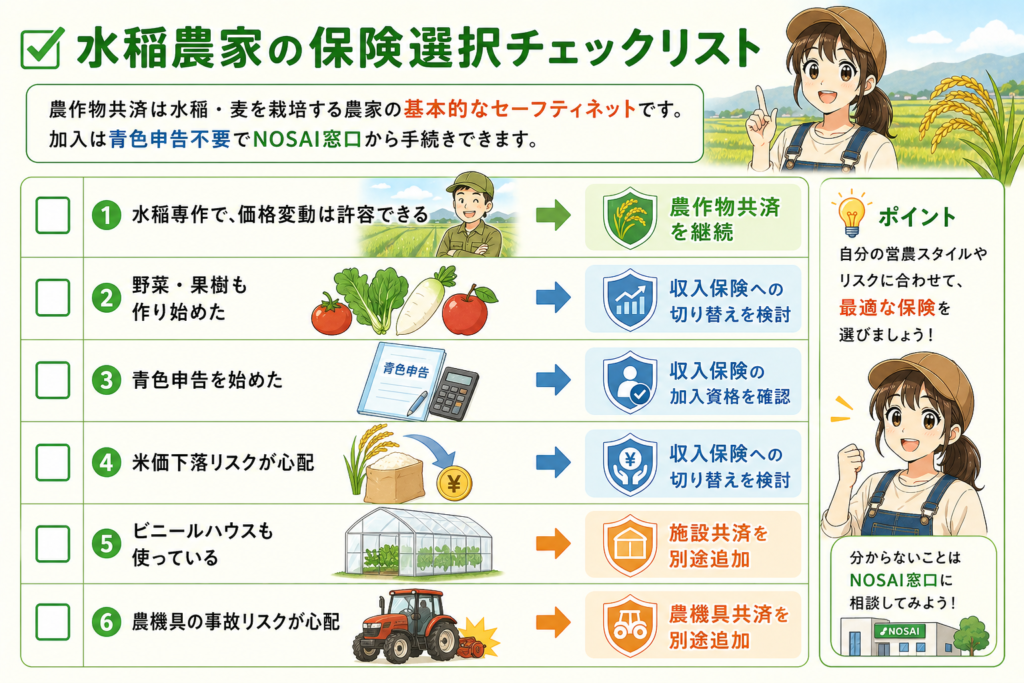 水稲農家の保険選択チェックリスト: